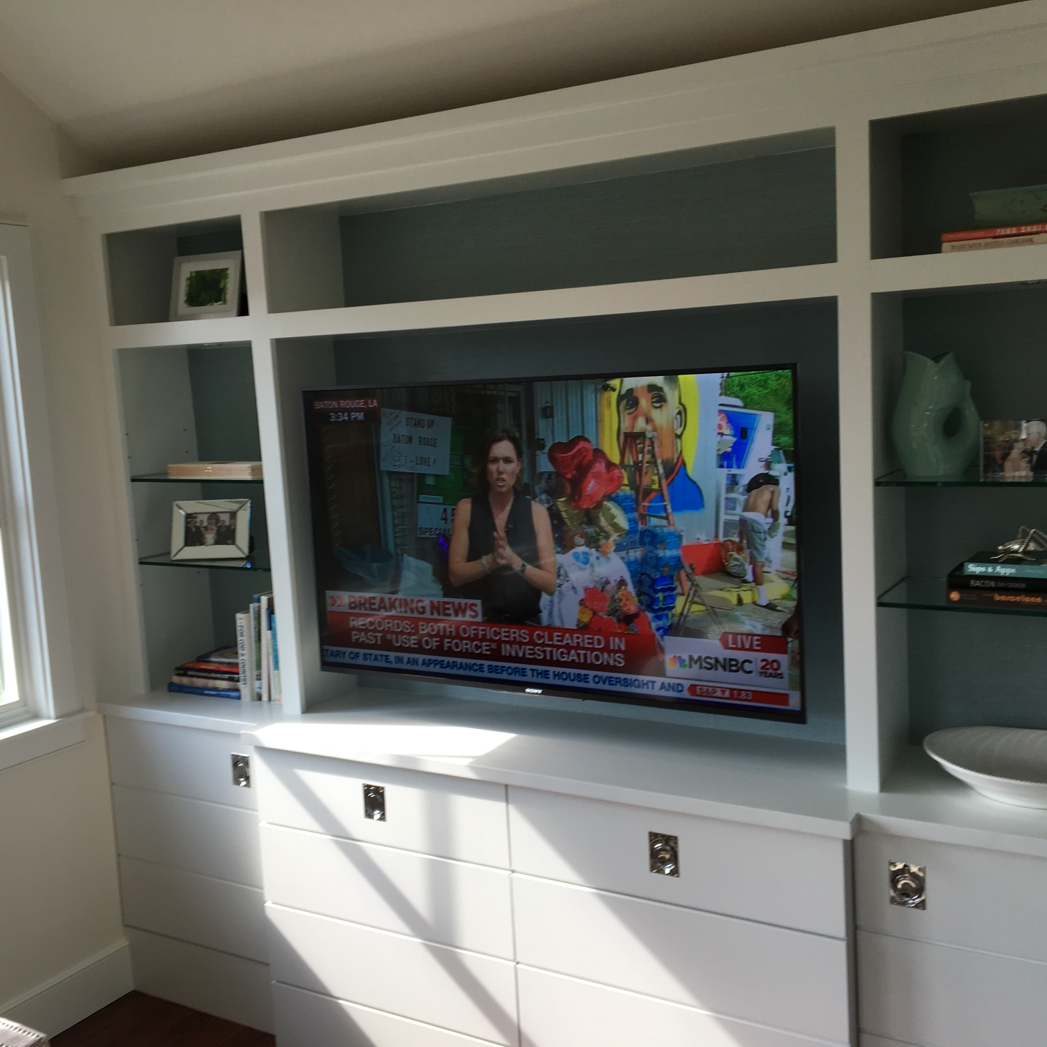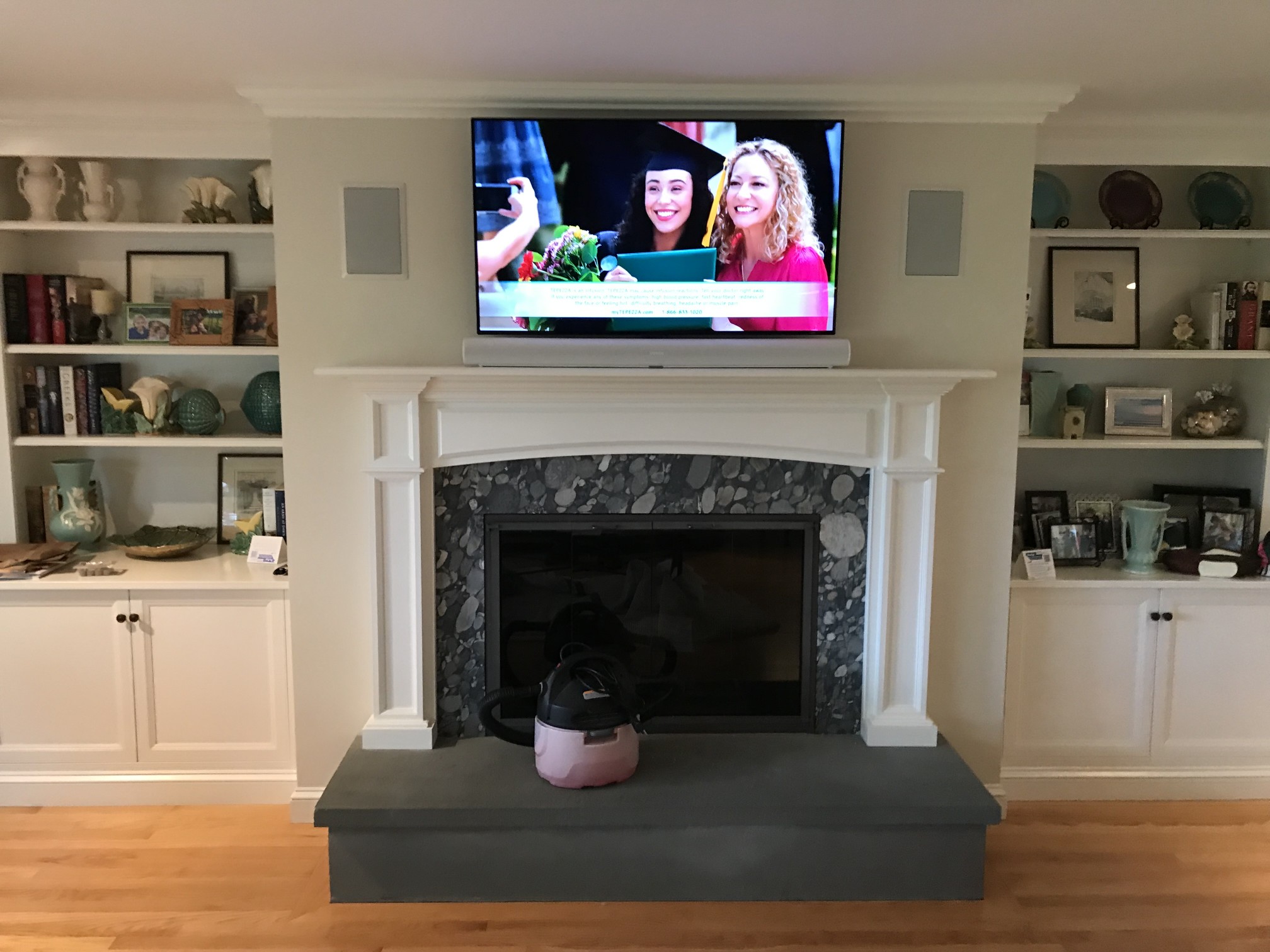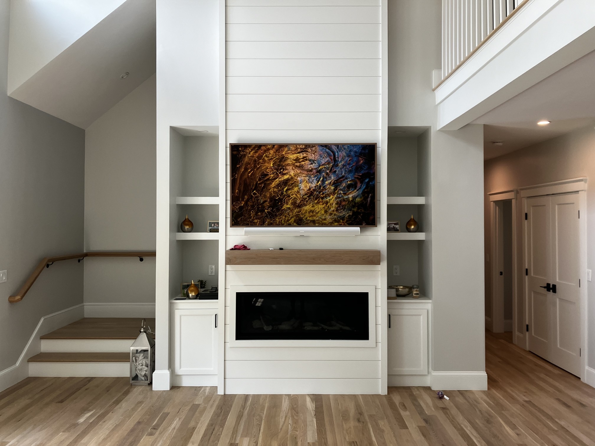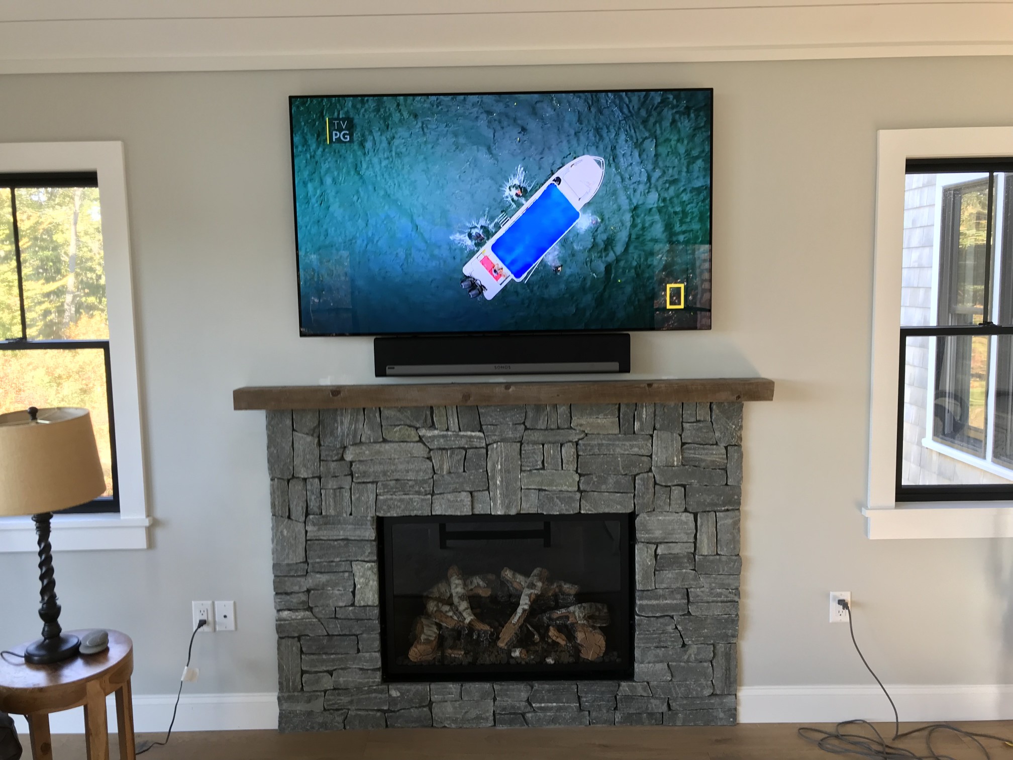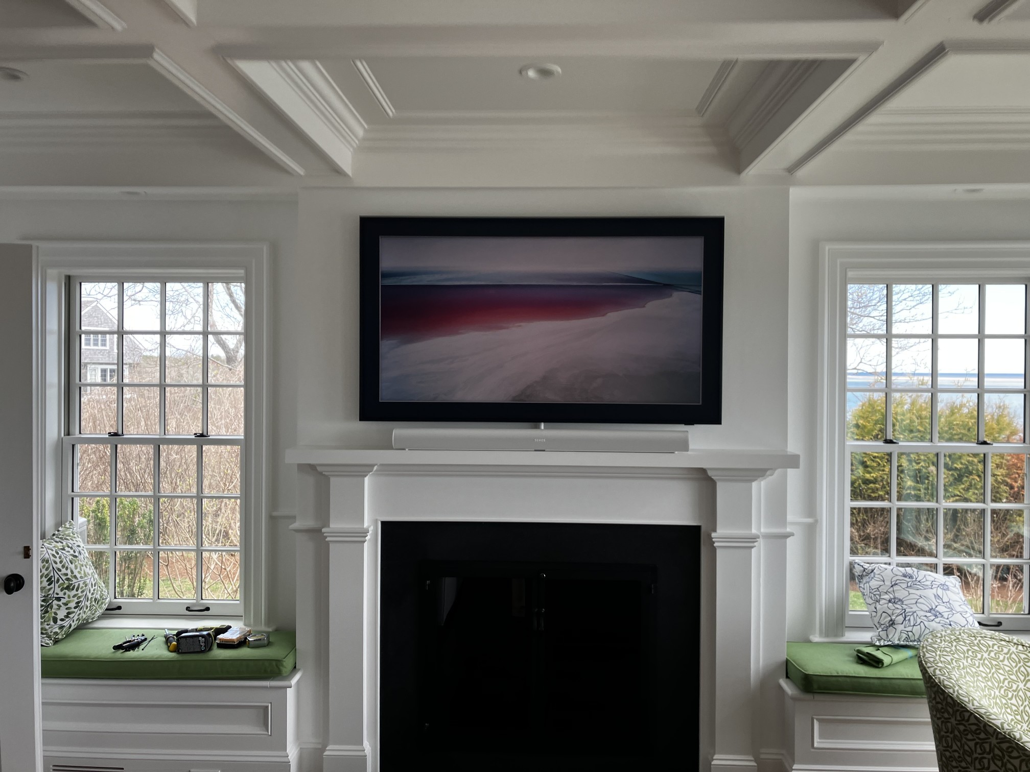 Samsung “The Frame” TV Which turns into artwork of your choice when not in use. With a Sonos Arc sound bar and subwoofer. We also do weatherproof TVs for outside areas.