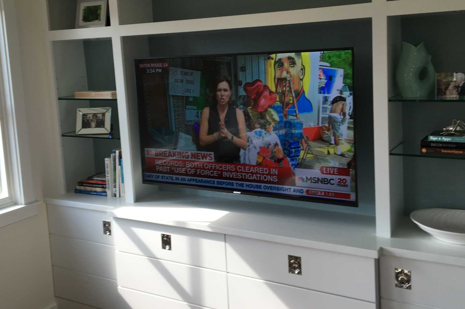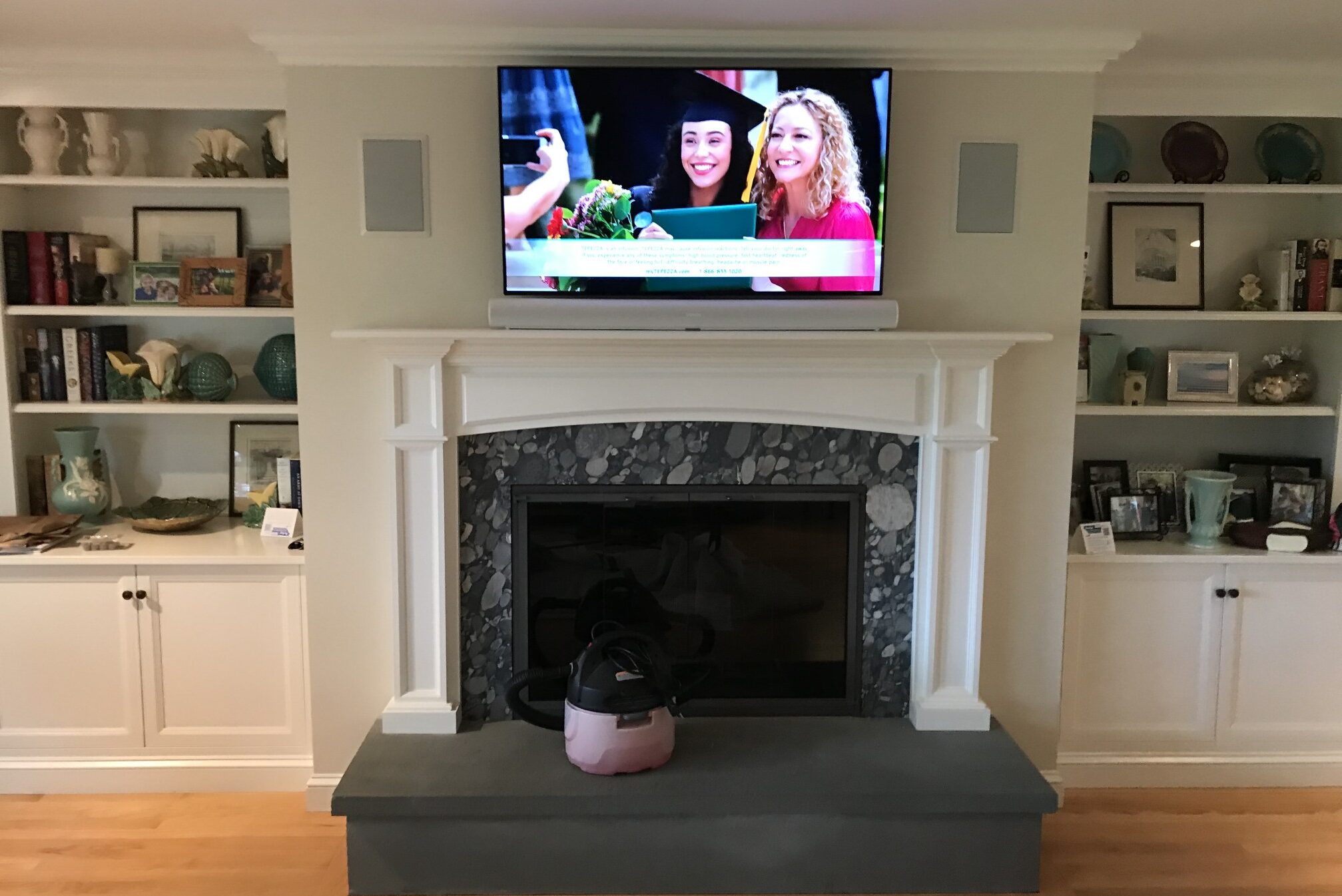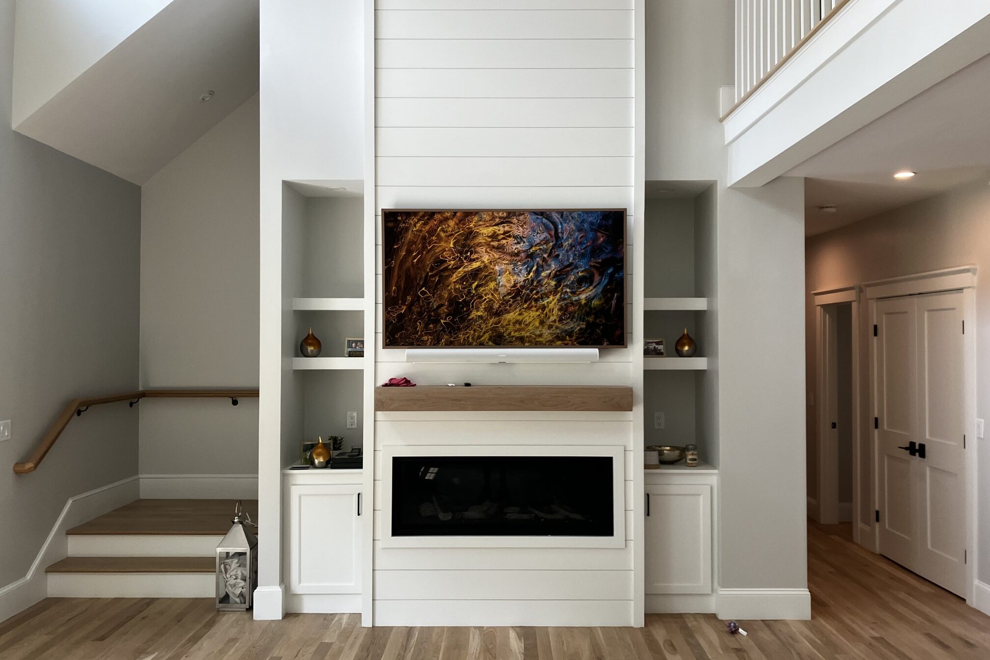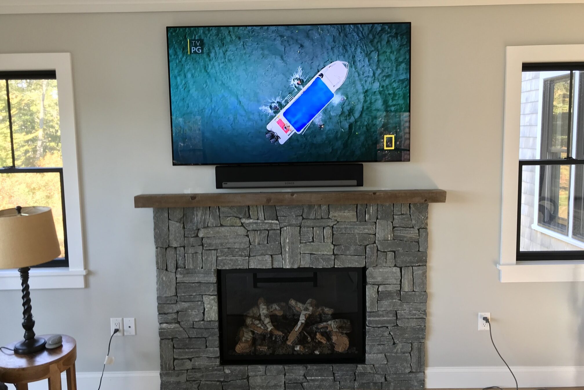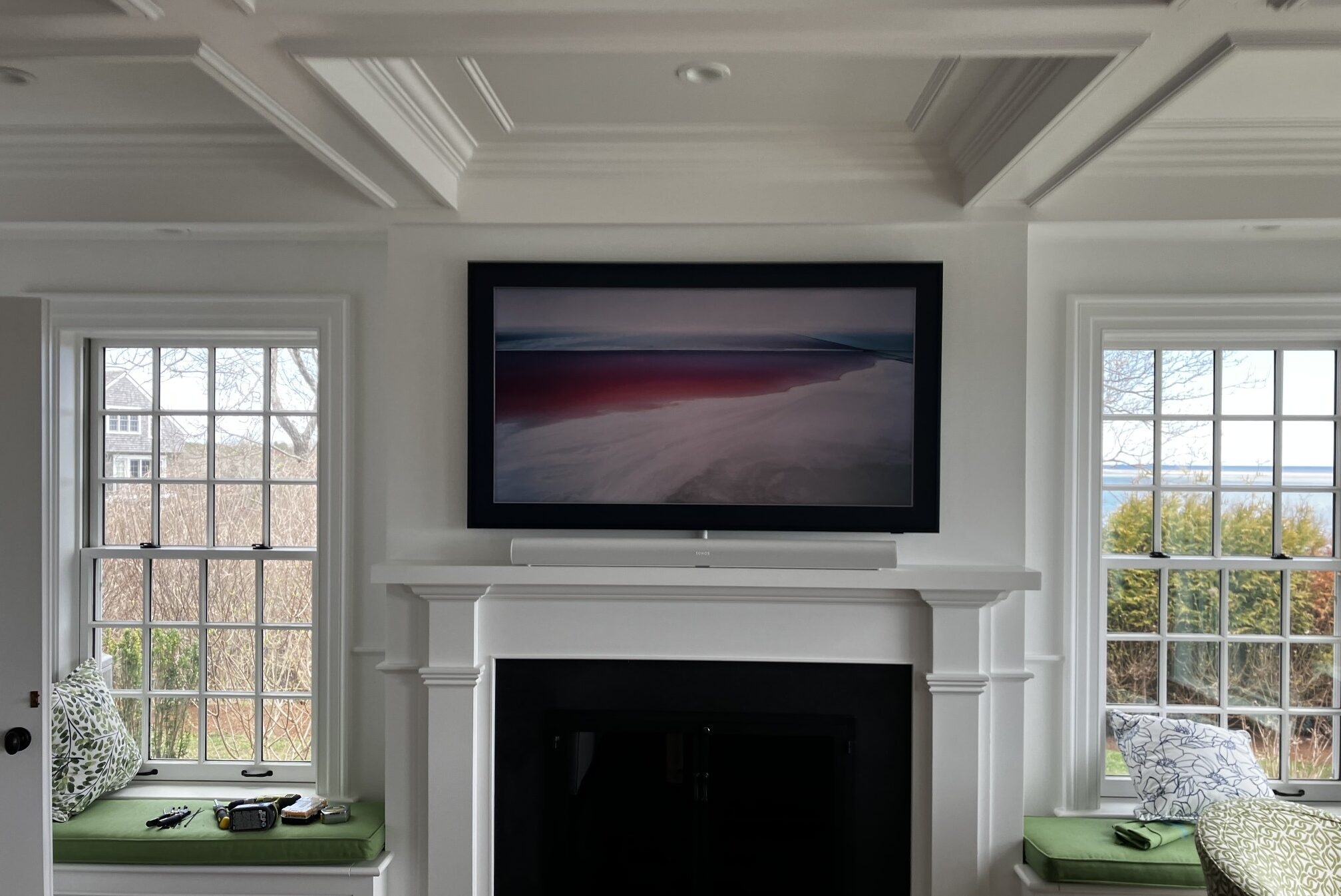 Samsung “The Frame” TV Which turns into artwork of your choice when not in use. With a Sonos Arc sound bar and subwoofer. We also do weatherproof TVs for outside areas.